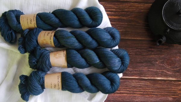 Chaque écheveau est teint à la main, en petit nombre par bain ce qui le rend unique. Il est recommandé d’alterner les écheveaux au fil du projet.