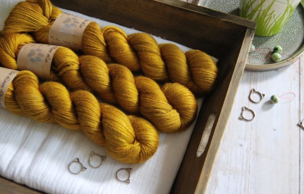 Chaque écheveau est teint à la main, en petit nombre par bain ce qui le rend unique. Il est recommandé d’alterner les écheveaux au fil du projet.